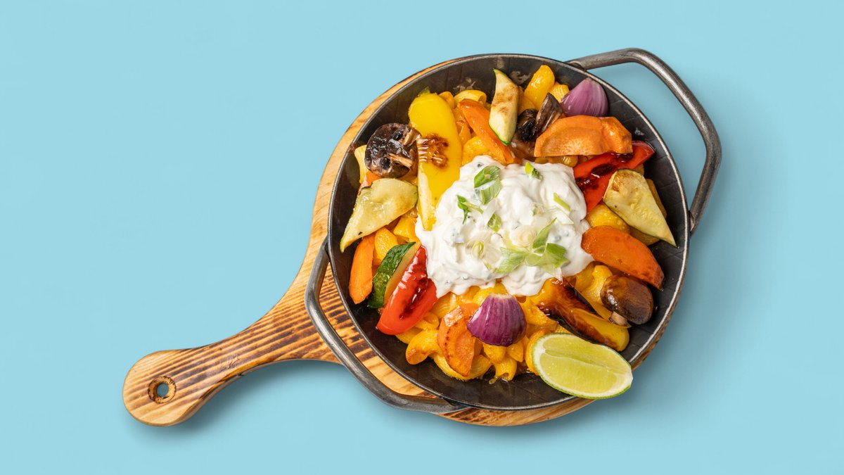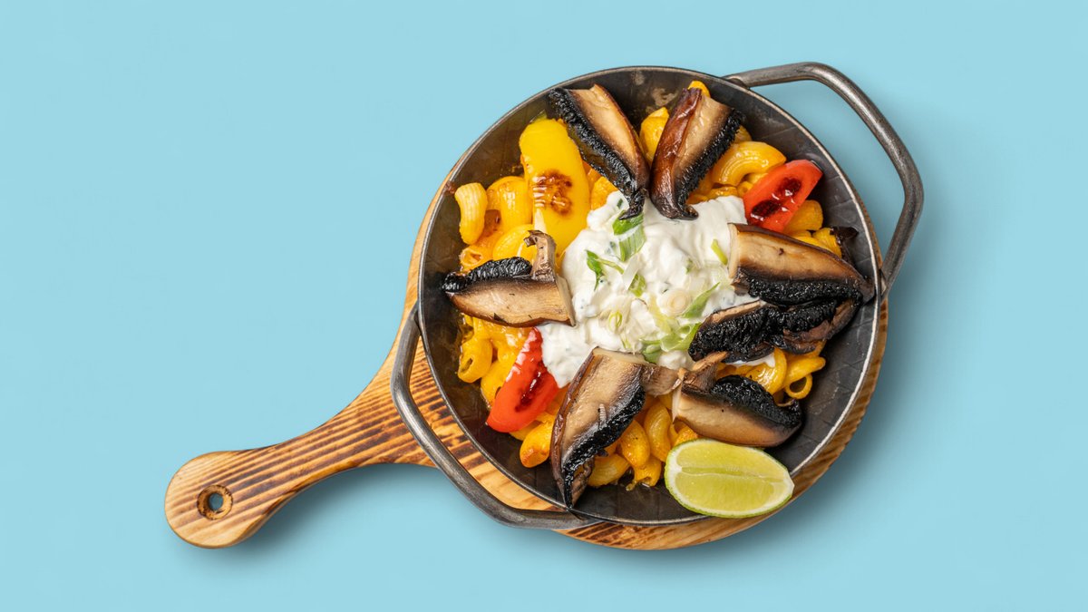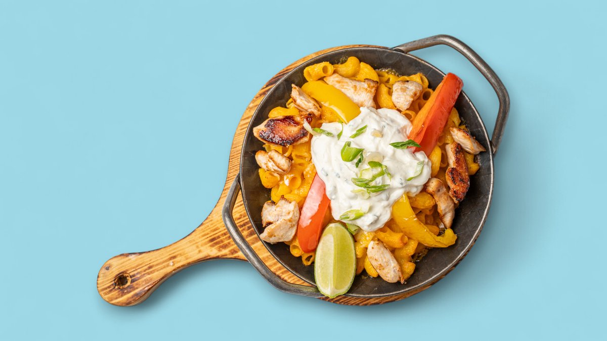 all dishes are prepared with sour cream, spring onions, limes and grilled peppers and topped with mozzarella and Parmesan cheese