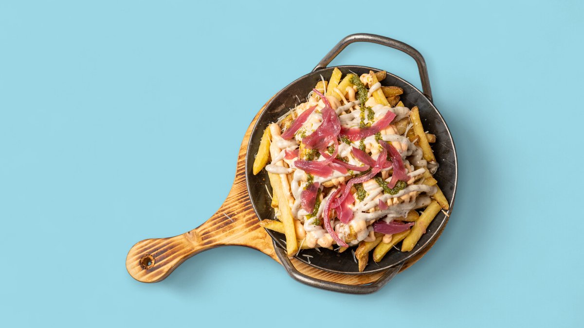 French fries, truffle mayonnaise, Parmesan, chimicurri and sriracha mayonnaise