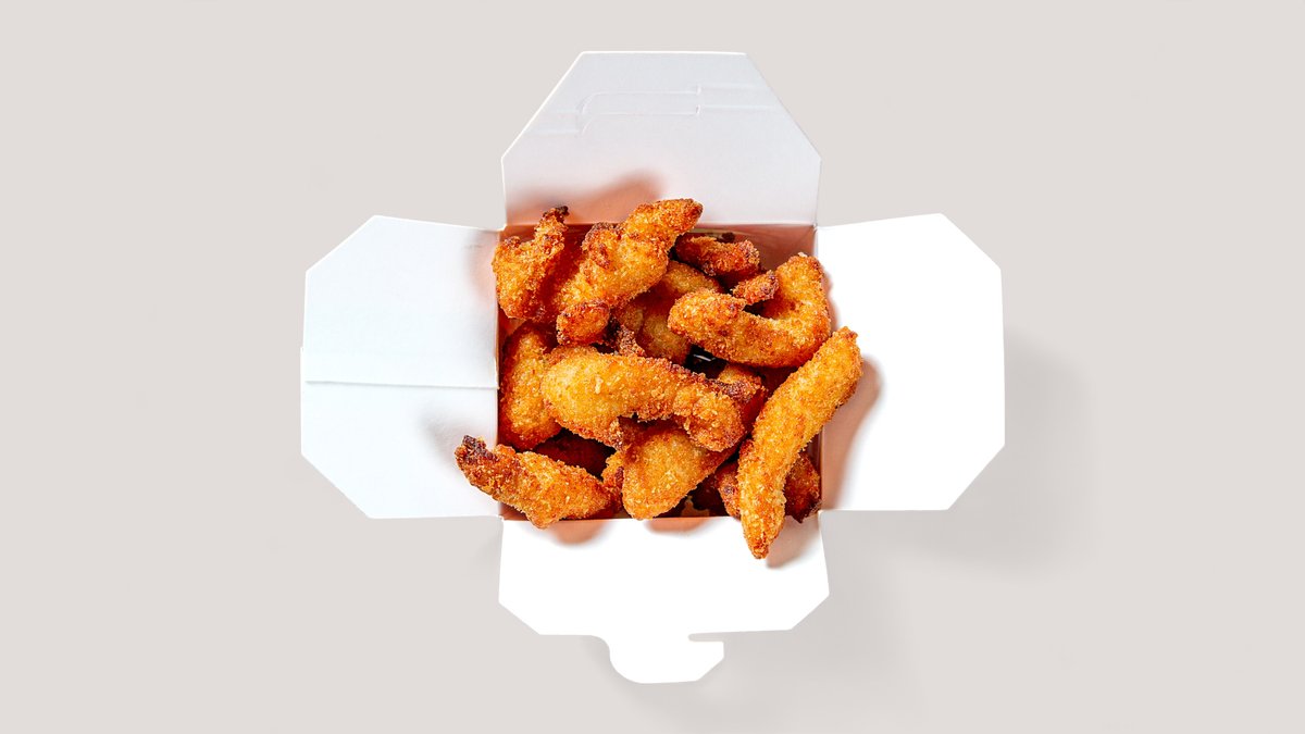 gebratene Nudeln mit paniertem Hühnerfleisch