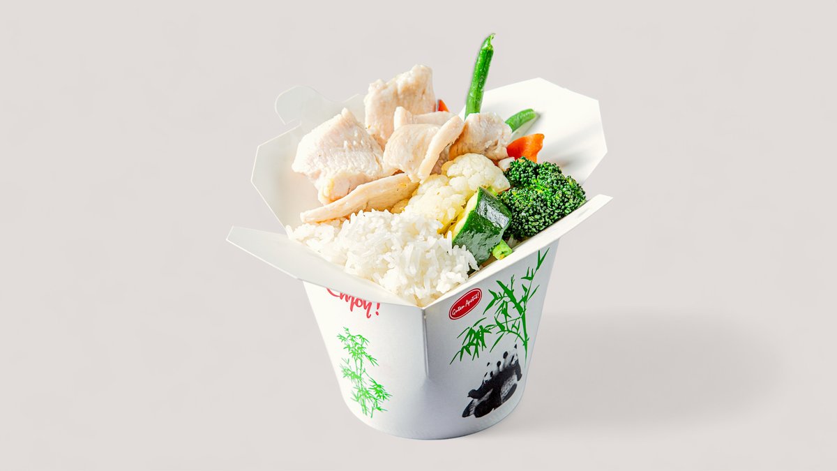 Jasminreis mit Wokgemüse und Hähnchenfleisch