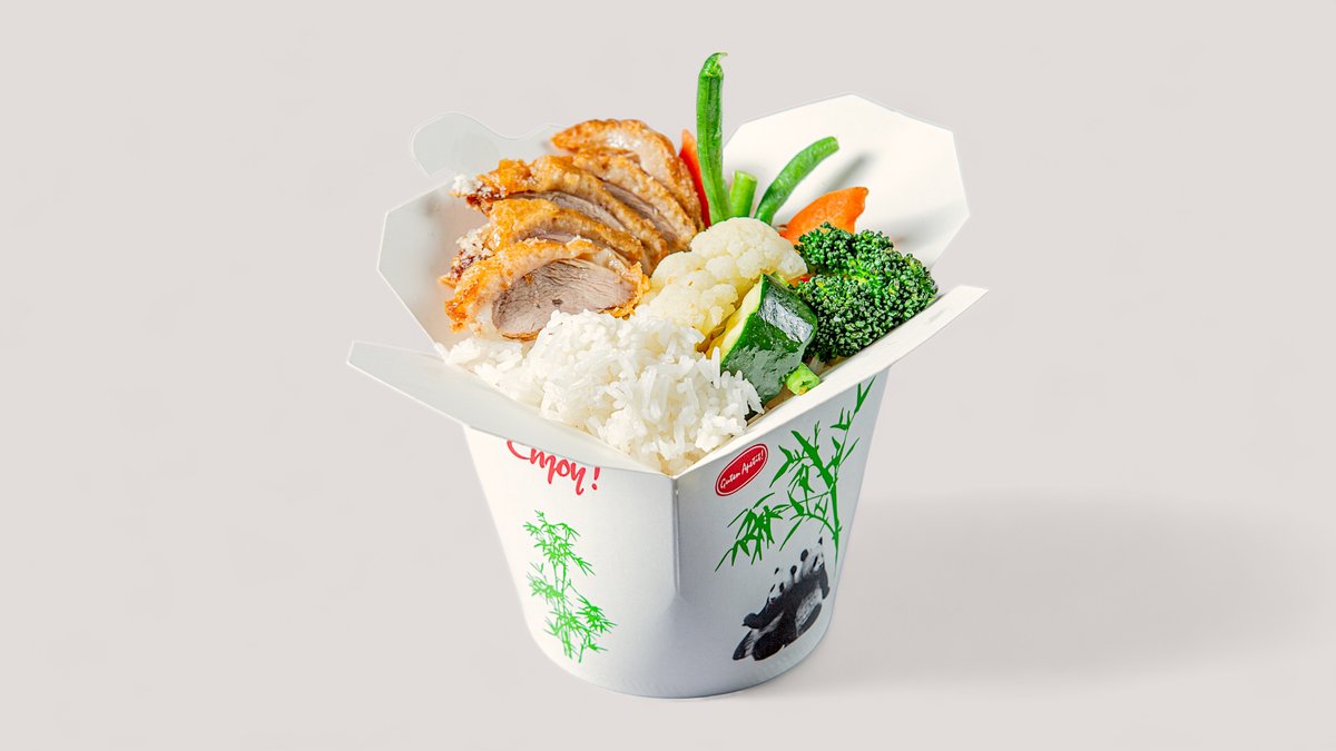 Jasminreis mit Wokgemüse und knuspriger Ente