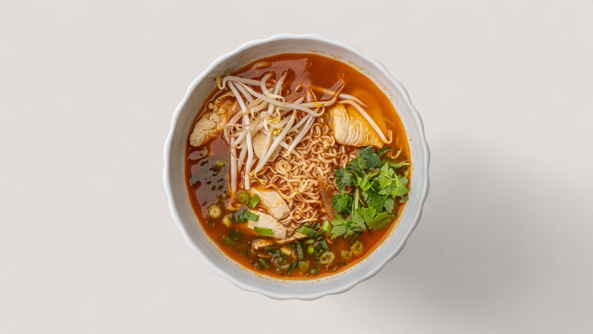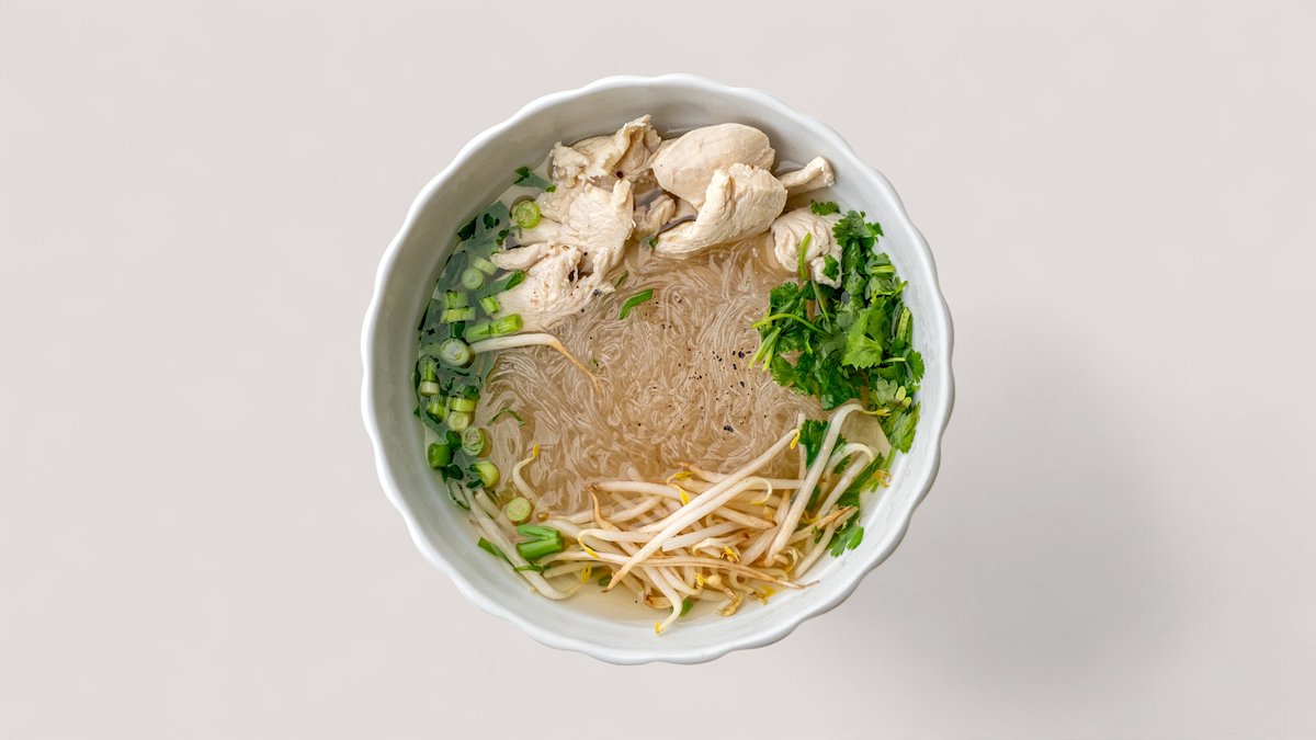 traditionelle Reisbandnudelsuppe mit Hühnerfleisch