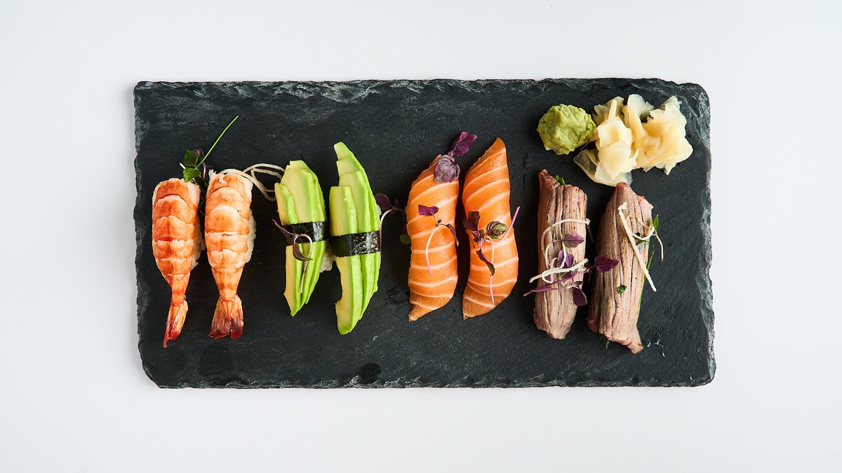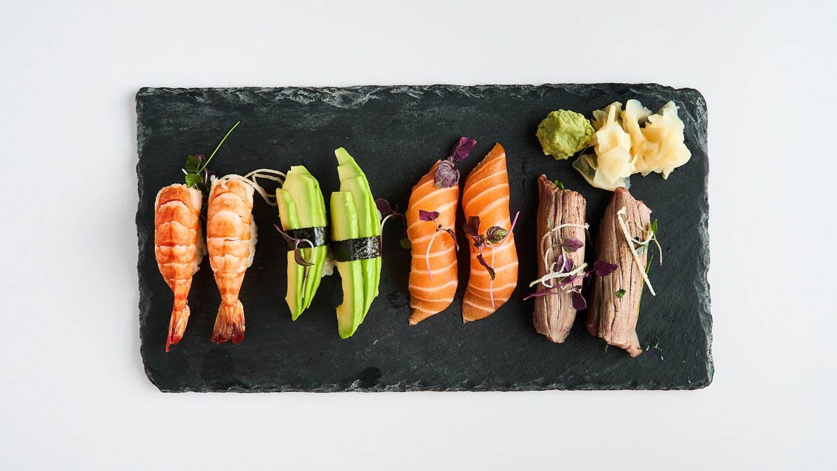 11 pieces with salmon, tuna, whitefish, prawns, coriander, mint and chili soy sauce