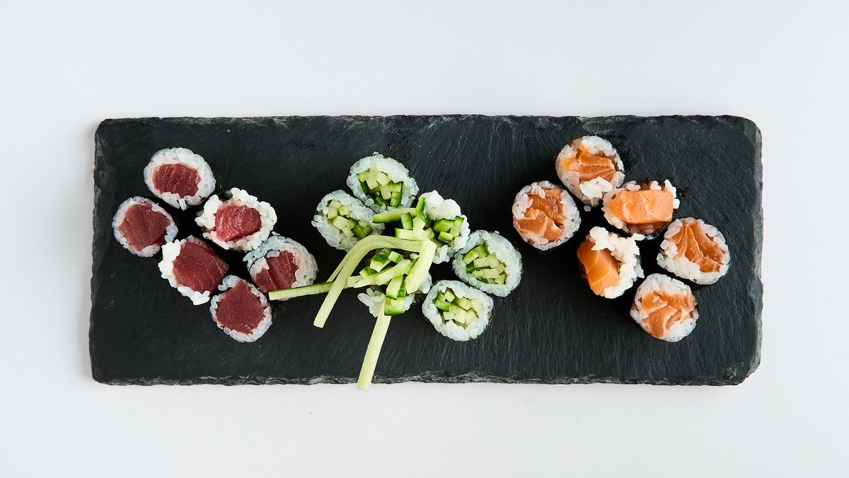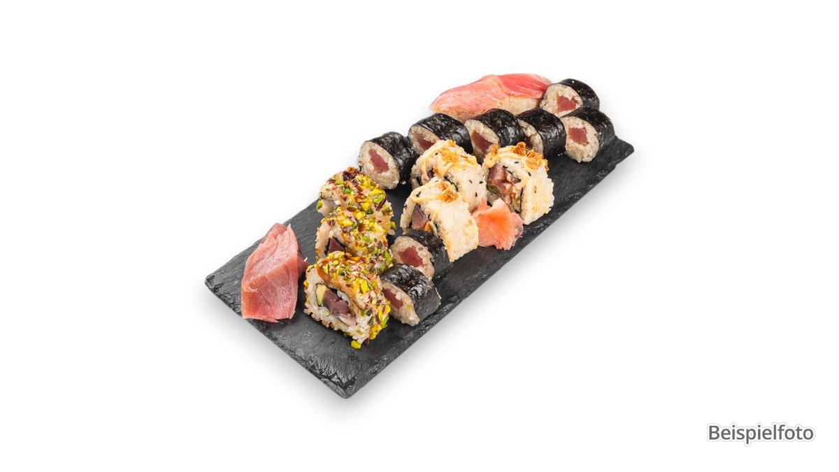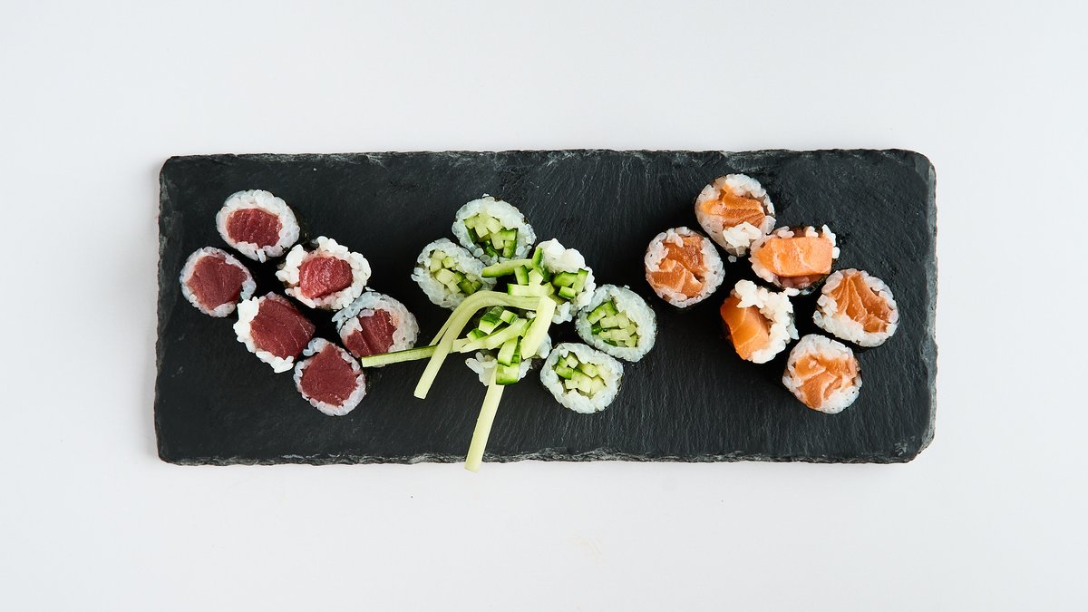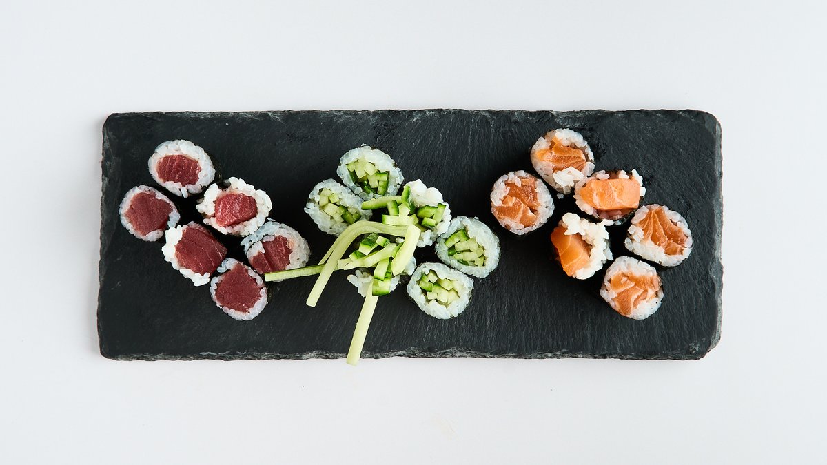 for 2 people 6x maki 8x California inside-out roll 2x nigiri 6x futo maki 6x mini baked roll