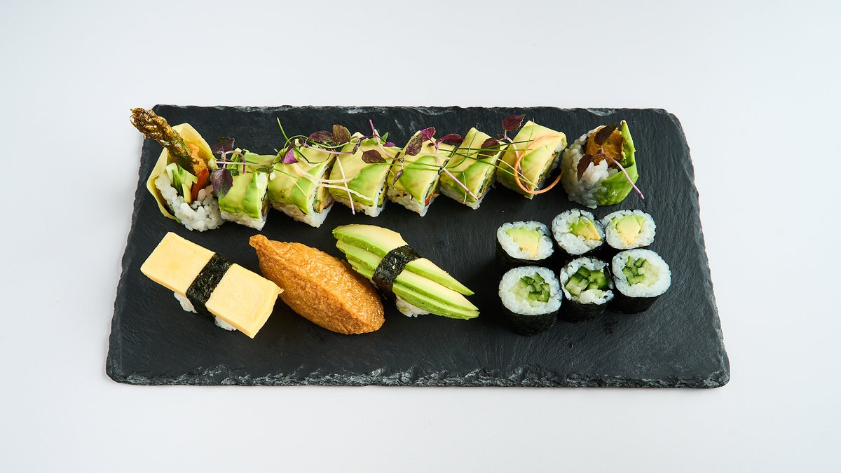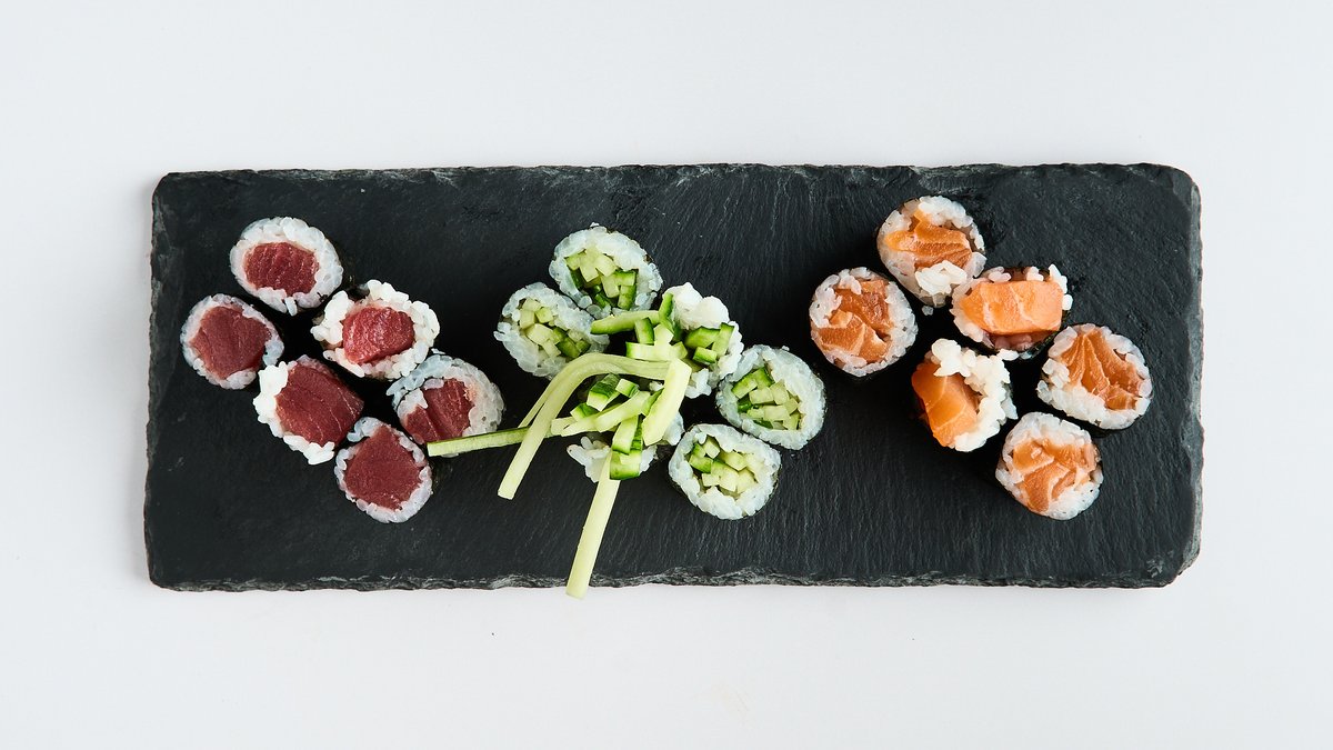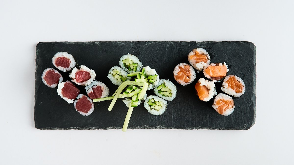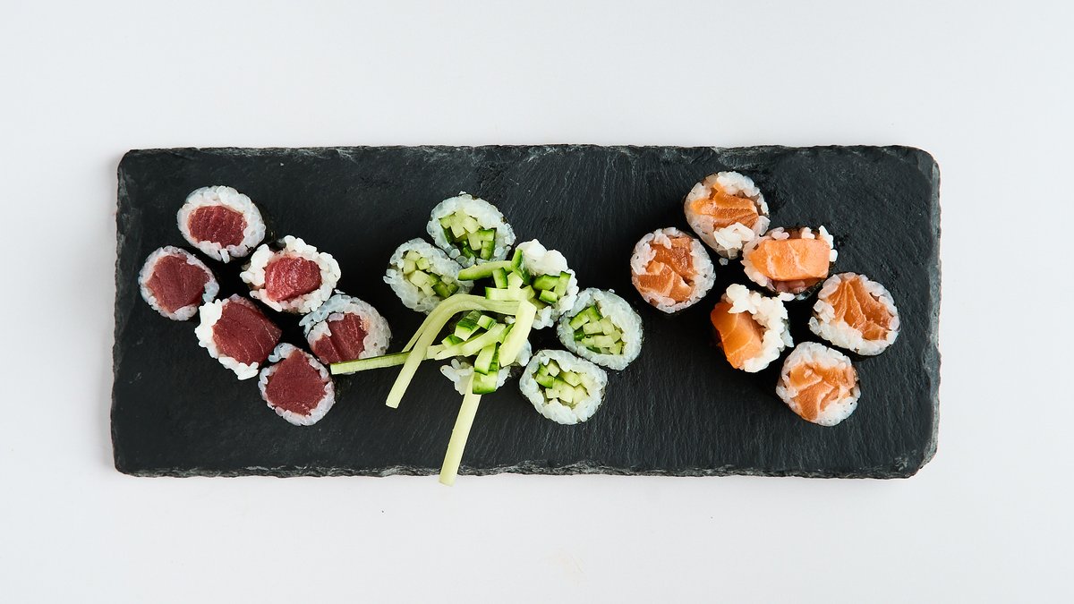 for 2 people 6x maki 8x California inside-out roll 2x nigiri 6x futo maki 6x mini baked roll