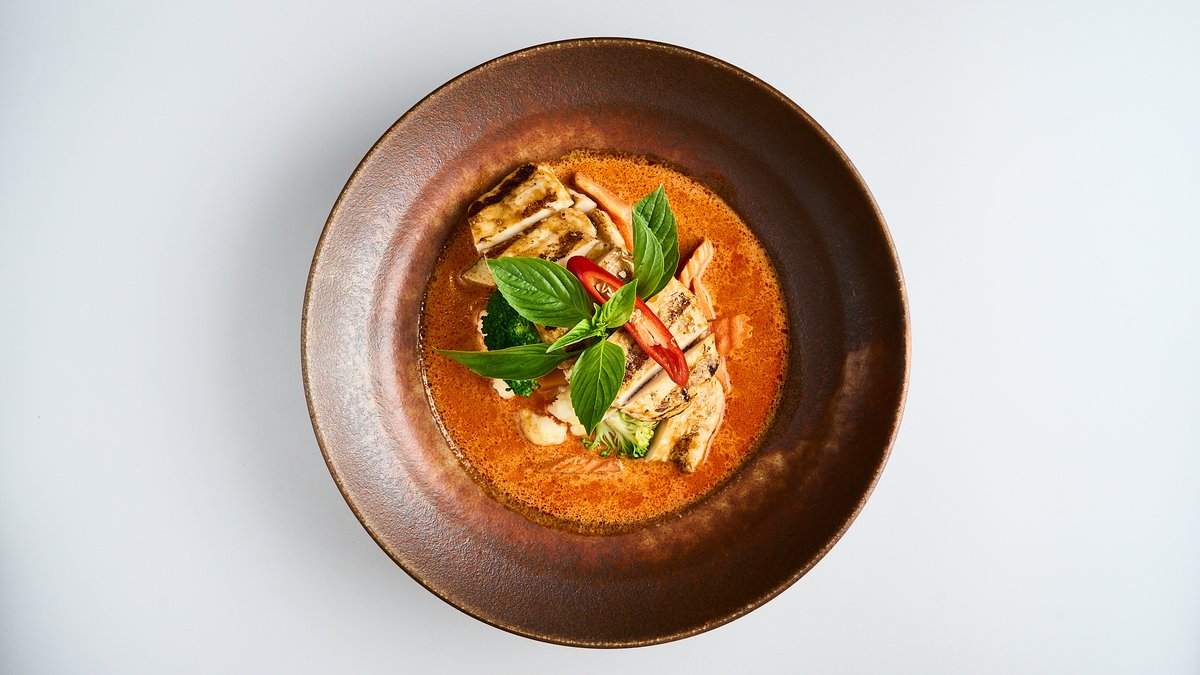 exotic with chicken broth, coconut milk, tomatoes, champignons, coriander and an ingredient of your choice