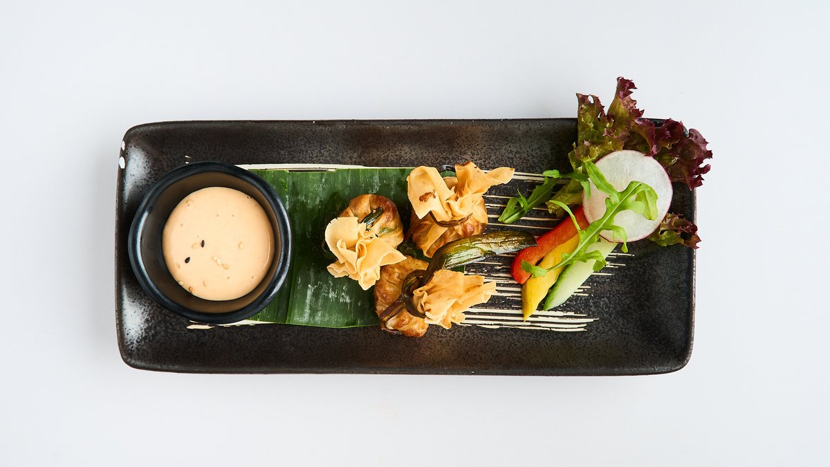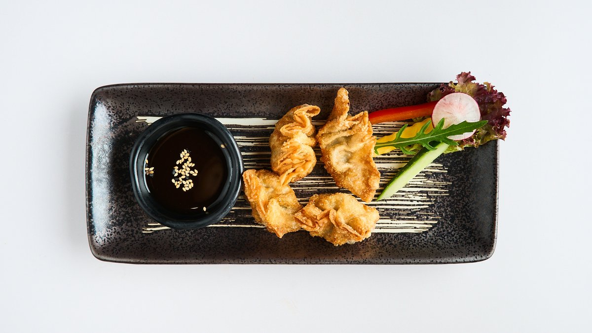 3 pieces, deep-fried dumplings filled with prawns, pork, fish, squid, onions, carrots and fragrant mushrooms