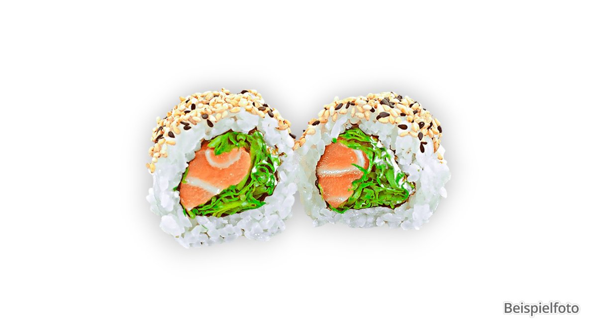 with salmon, tobiko and sesame, wrapped with salmon