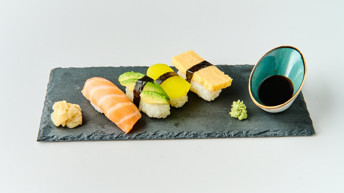 8x avocado maki 8x cucumber maki 8x veggie inside out roll 1x avocado nigiri 1x radish nigiri