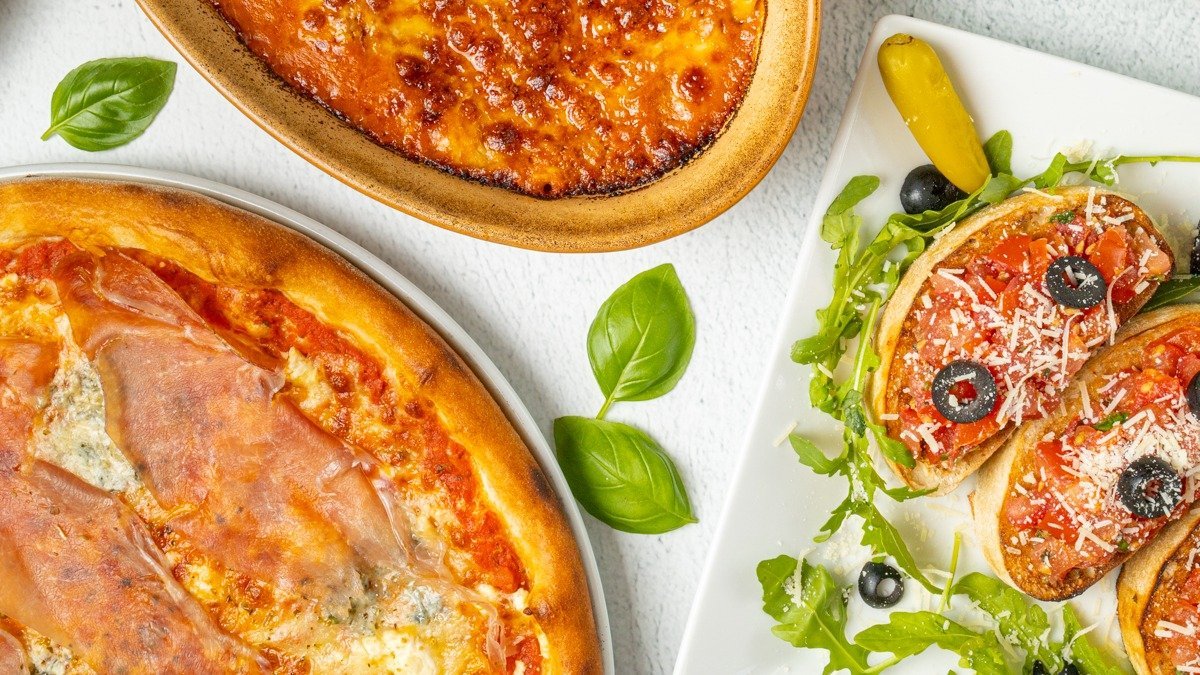 with Parma ham, buffalo mozzarella, rocket and cherry tomatoes