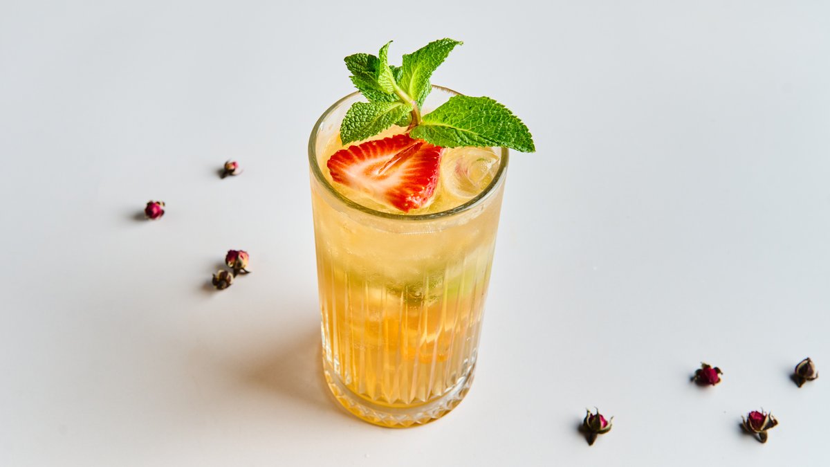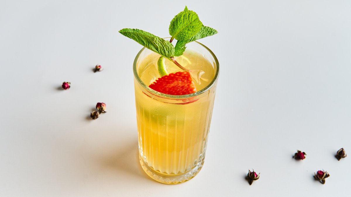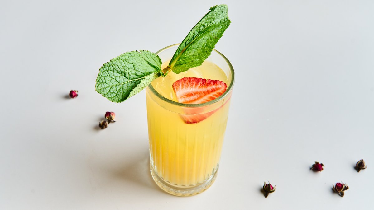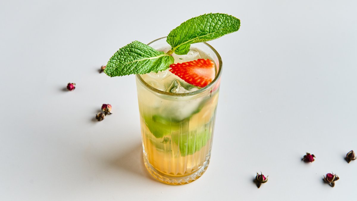 Eistee aus frischem Limettensaft und Kokosblütenzucker, verfeinert mit Jasminblütennote