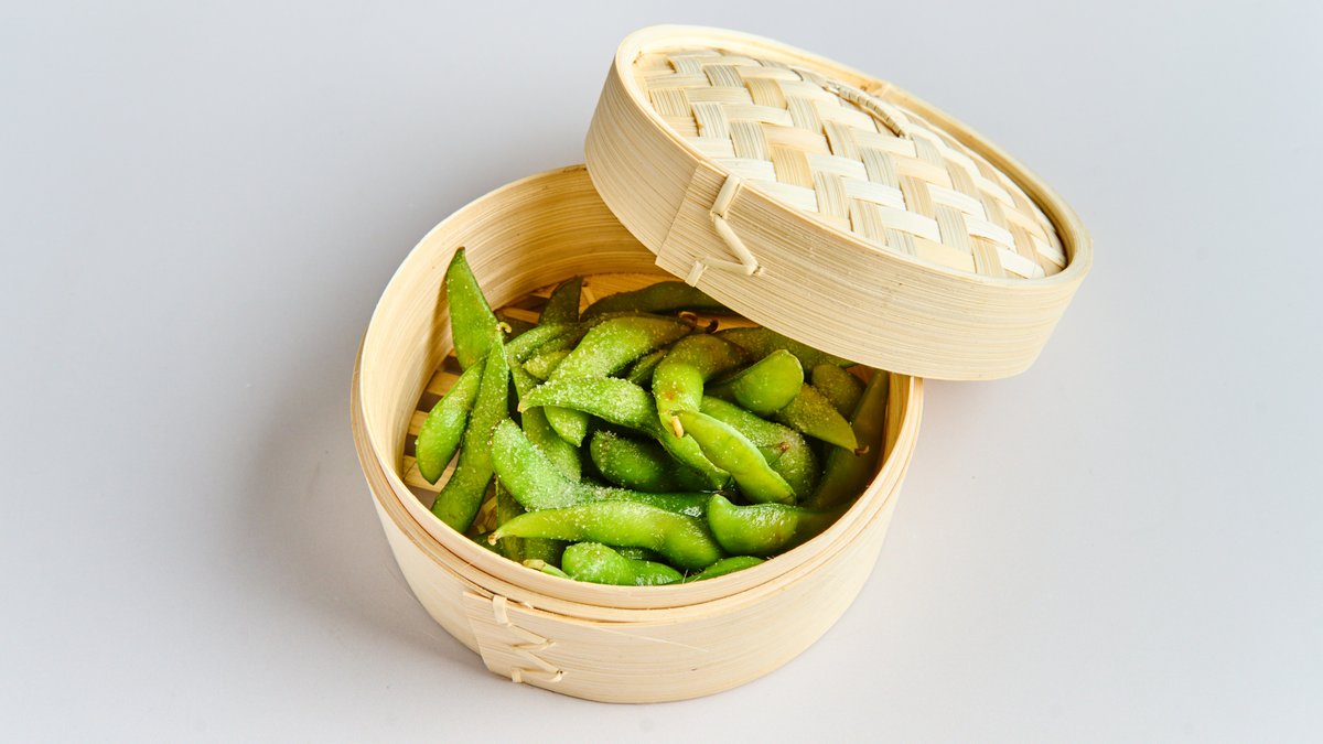 gedämpfte Edamame-Sojabohnen mit Himalaya-Salz und Sesam