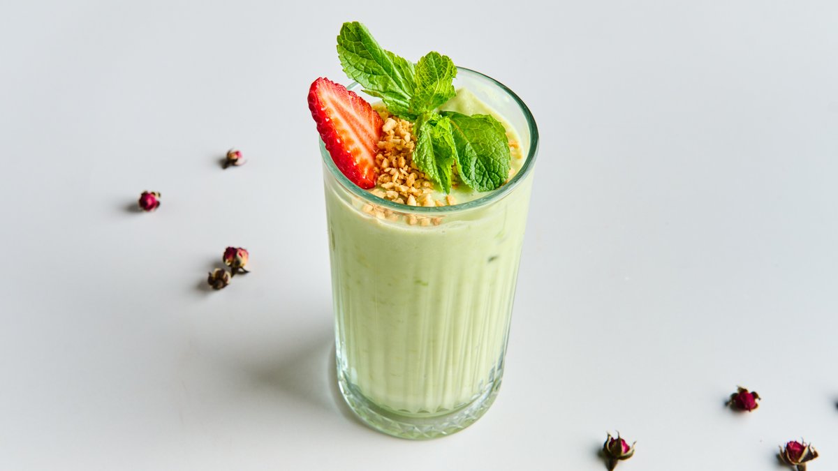 tropisch und samtig mit cremiger Avocado, Kokosmilch, Haferdrink, Matcha und gerösteten Kokosflocken