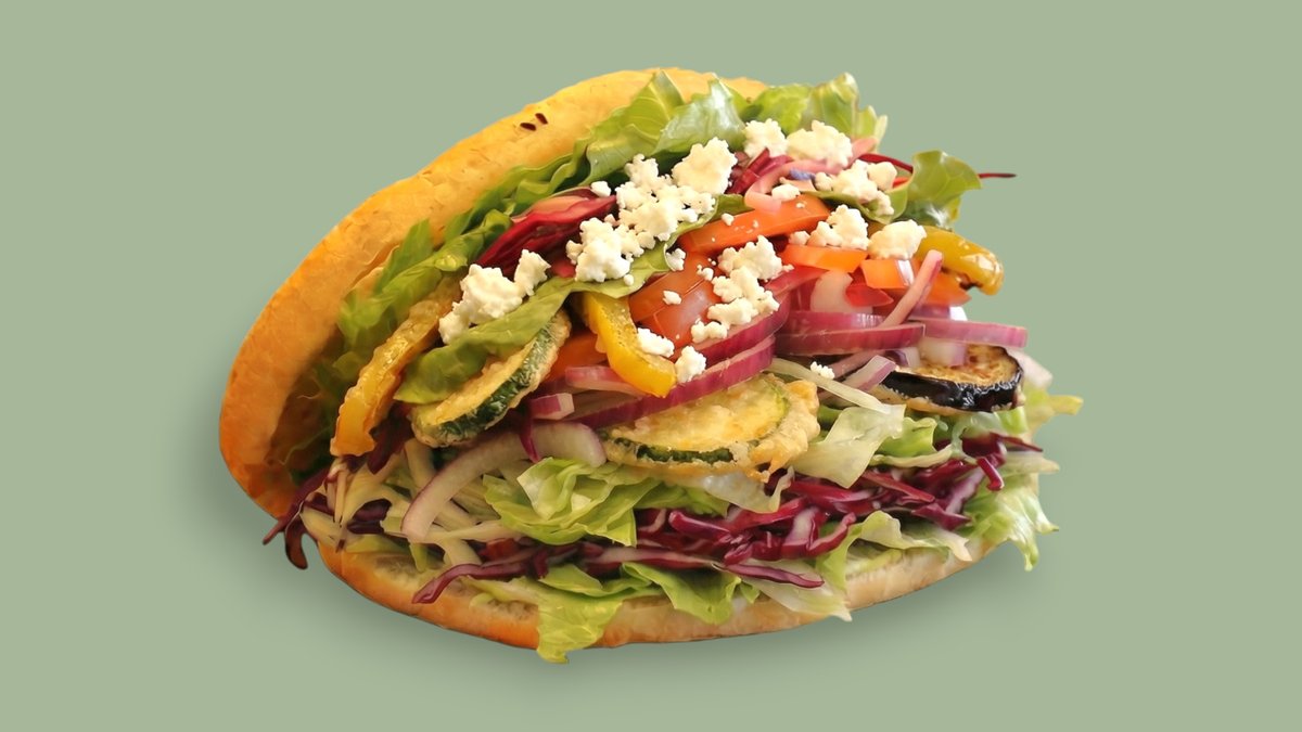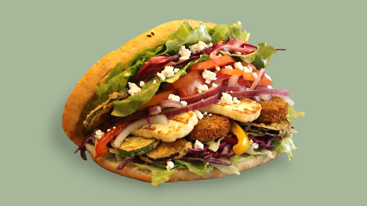 Mit frittiertem Gemüse, Schafskäse, Salat und Soße deiner Wahl