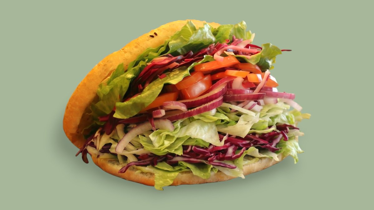 alle Gerichte werden mit Eisbergsalat, Krautsalat, Tomaten, Gurken, Zwiebeln und einer Soße deiner Wahl zubereitet