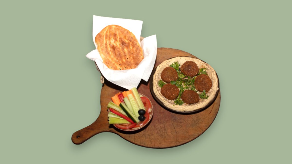 Cremiger Hummus mit zart geschnittenem Fleisch deiner Wahl, frisch gebraten und aromatisch abgeschmeckt. Serviert mit warmem Fladenbrot und Rohkost. Orientalischer Genuss mit kräftigem Geschmack.