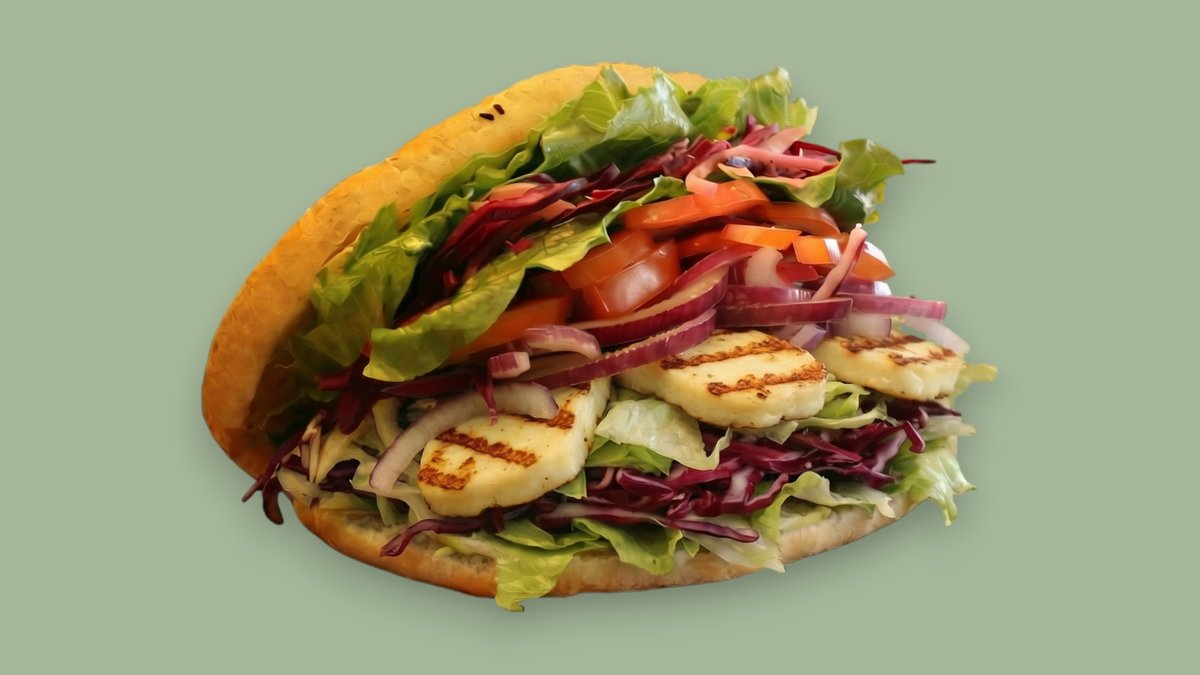 Mit Fleisch deiner Wahl, Halloumi, Salat und Soße deiner Wahl