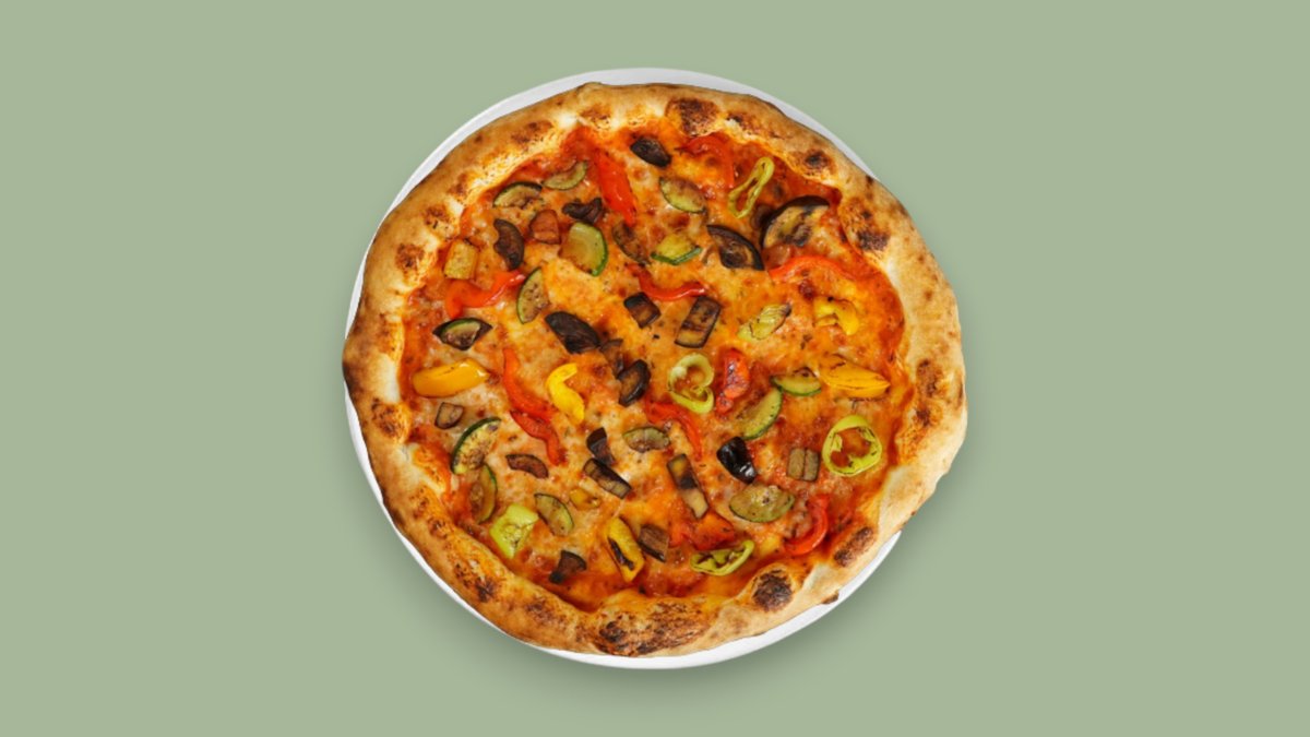 Mit Tomatensoße, Mozzarella und verschiedenem Gemüse
