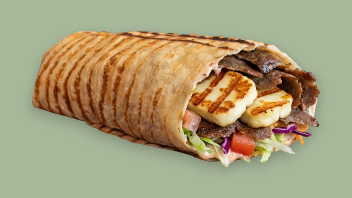 Döner Kebab mit gemischtem Fleisch und Halloumi