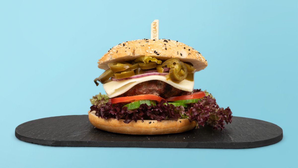 mit 150 g Rindfleisch, gegrilltem Schafskäse, Gemüse der Saison, Spinat, Ei, Jalapeños und Joppie-Dip