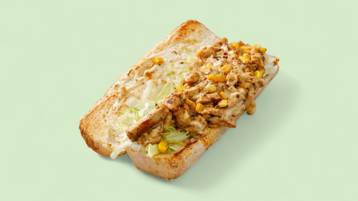 mit marinierten Hähnchenbruststreifen, Käse, Mais, Salat und Mayonnaise