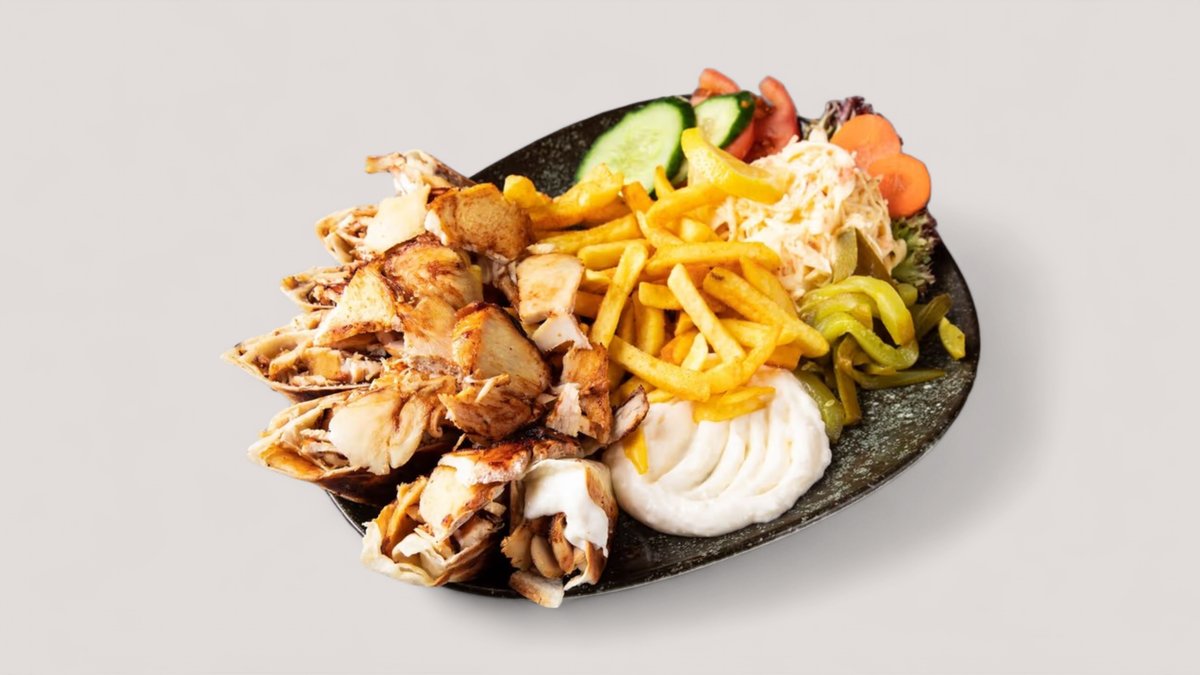 tenderly grilled with Arabic bread, gherkins and a creamy garlic sauce