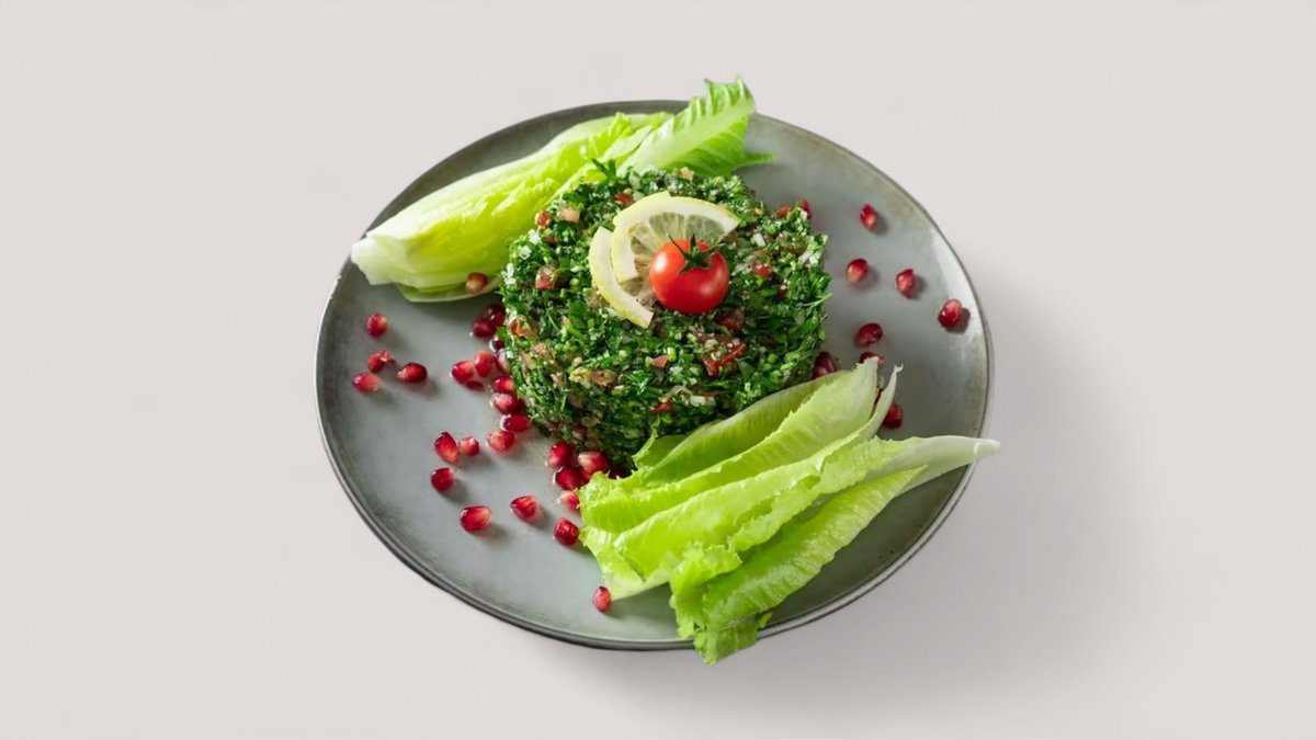 crisp romaine lettuce with cucumbers, onions, radishes, mint, parsley and crispy toasted flatbread, served with a delicious pomegranate vinaigrette