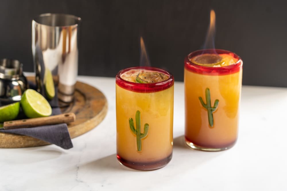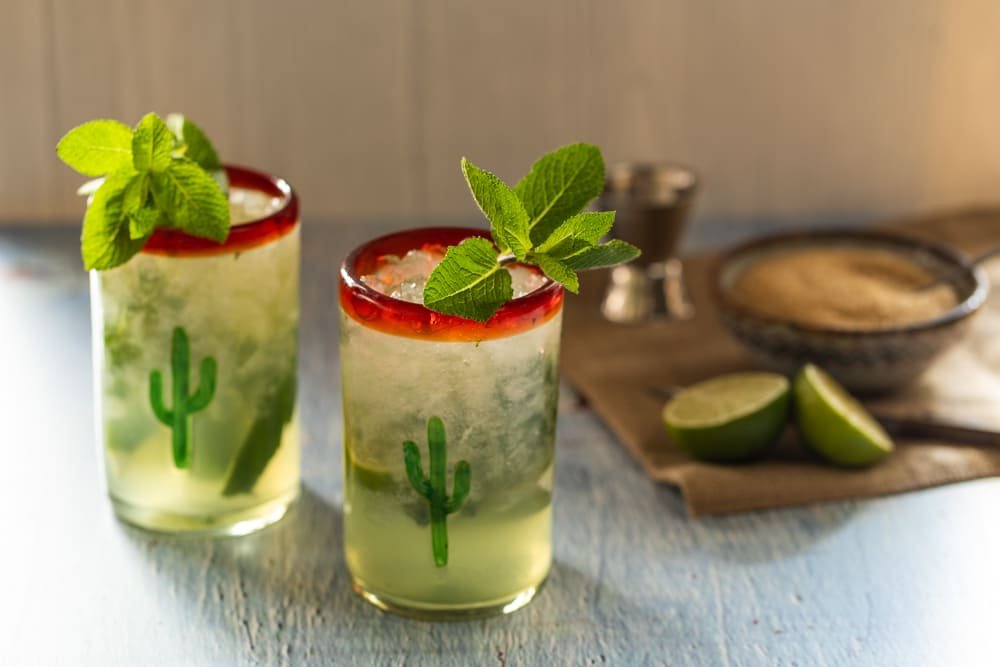 mit Sol Bier, Worcestersoße, Tabasco, frisch gepresstem Limettensaft und Salz-Chilipulver-Rand