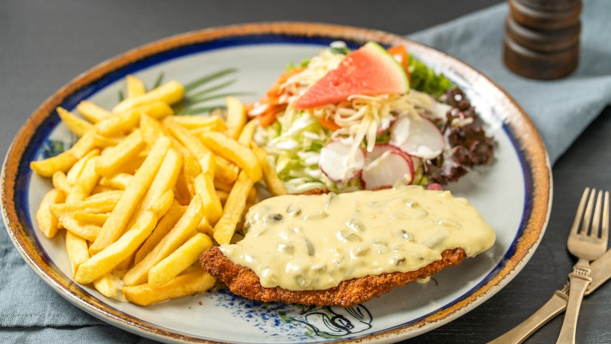 alle Gerichte werden mit Salat serviert und mit Sauerrahm garniert („Enchilada Morita” wird ohne Sauerrahm garniert )