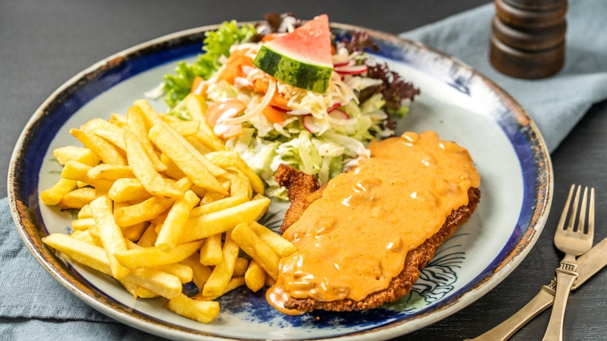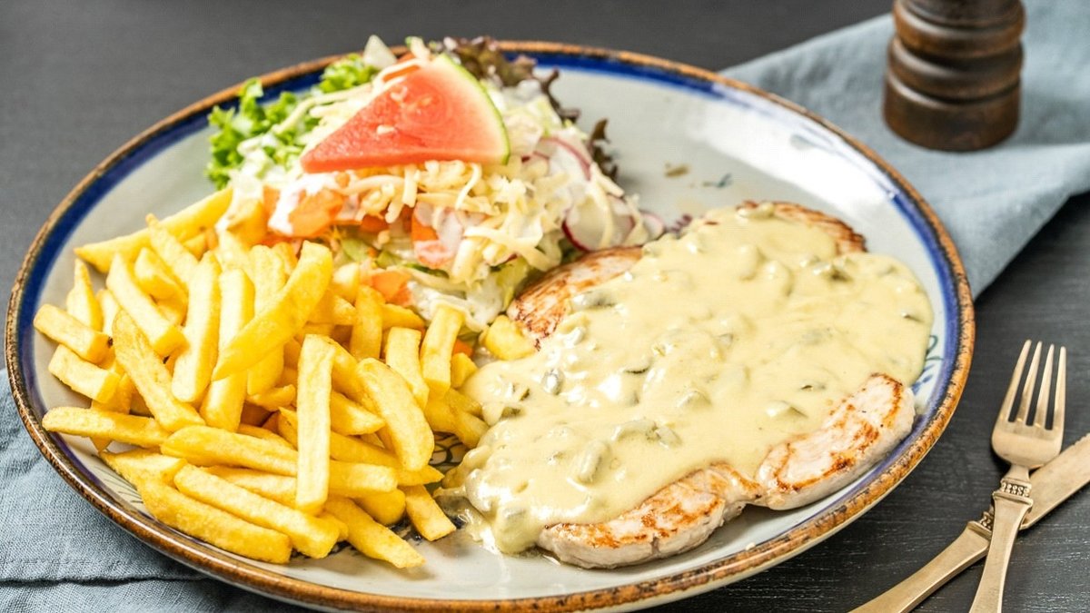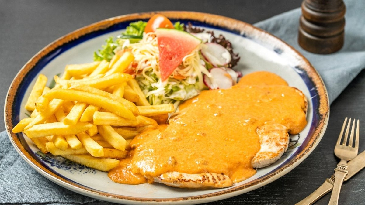 mit Salsa, einer Fleischsorte und einer Beilage deiner Wahl