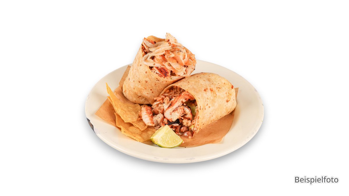 alle Burritos werden mit Käse und Bohnen zubereitet („Burrito Gabriel“ und „Burrito Tijuana“ werden ohne Käse und Bohnen zubereitet, „Burrito Sierra Madre“ wird ohne Bohnen zubereitet)
