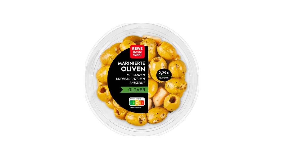 Rewe Beste Wahl Oliven mit Knoblauch 150g
