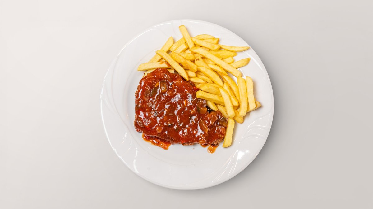 alle Gerichte werden mit Schwein zubereitet („30. Schnitzel deiner Wahl” wird mit einer Fleischsorte deiner Wahl zubereitet)