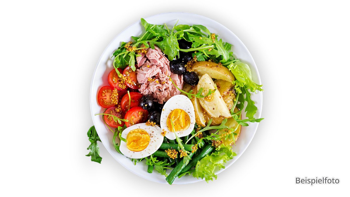 mit Thunfisch, Ei und Oliven