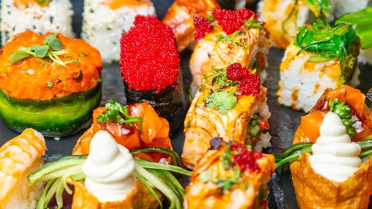 Large selection of tasty sushi
