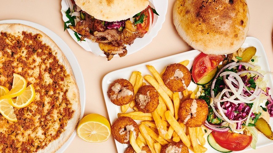 Pizza, doener and veggie wraps