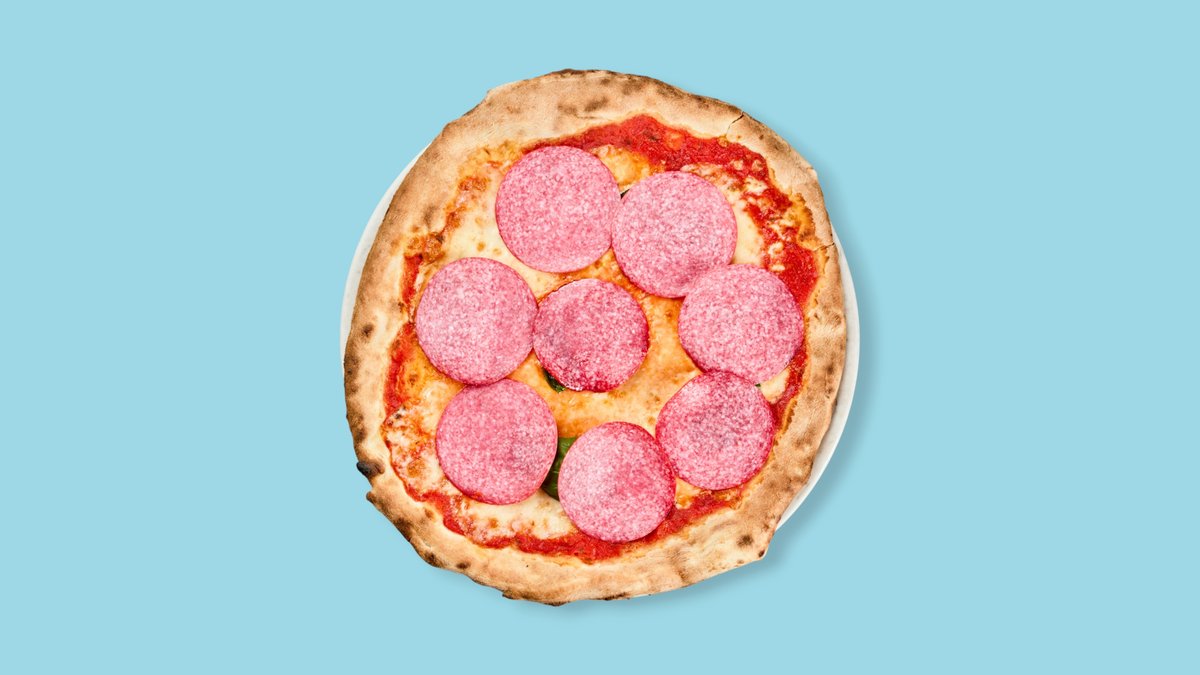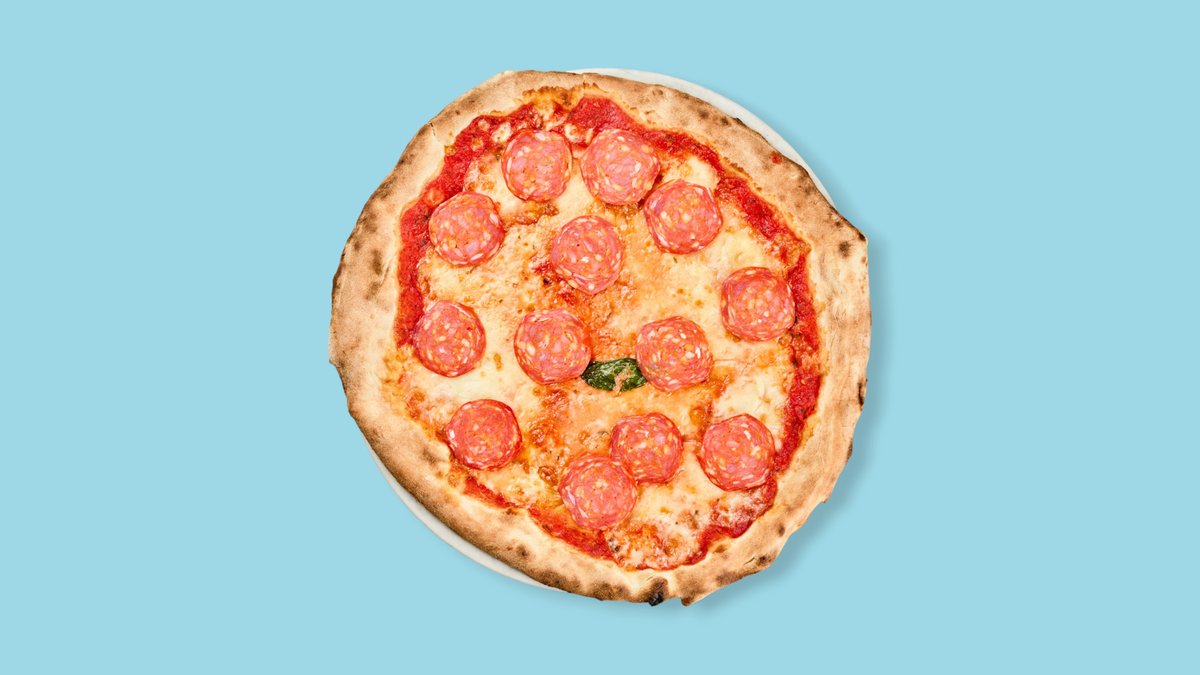 with tomato sauce, Fior di Latte and Salami Milano from pork