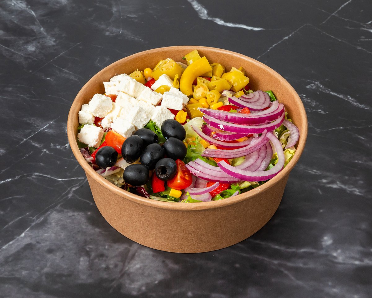 alle Salate werden mit Eisbergsalat, Tomaten, Gurken, Zwiebeln und einem Dressing deiner Wahl zubereitet („Caesar-Salat“ wird ohne Eisbergsalat, Tomaten, Gurken und Zwiebeln zubereitet, „Italienischer Salat“ wird ohne Tomaten, Gurken und Zwiebeln zubereitet, „California Salad“ wird ohne Zwiebeln zubereitet)