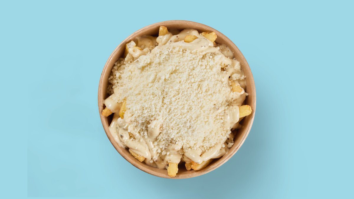 with crispy fries, truffle mayonnaise and Parmesan