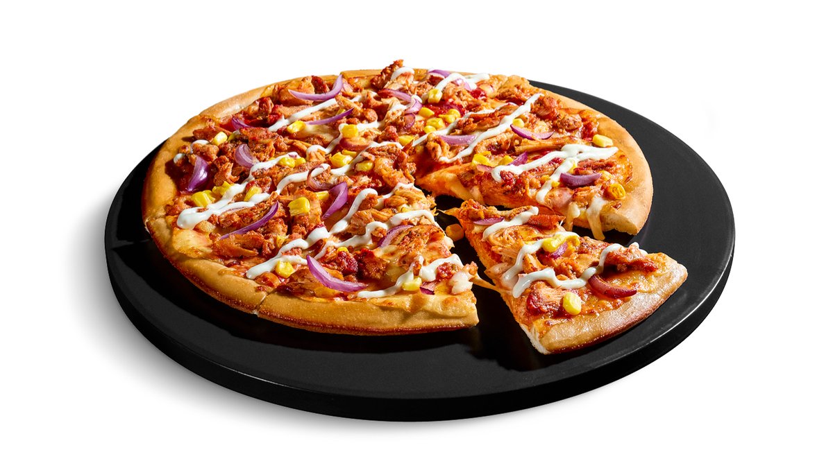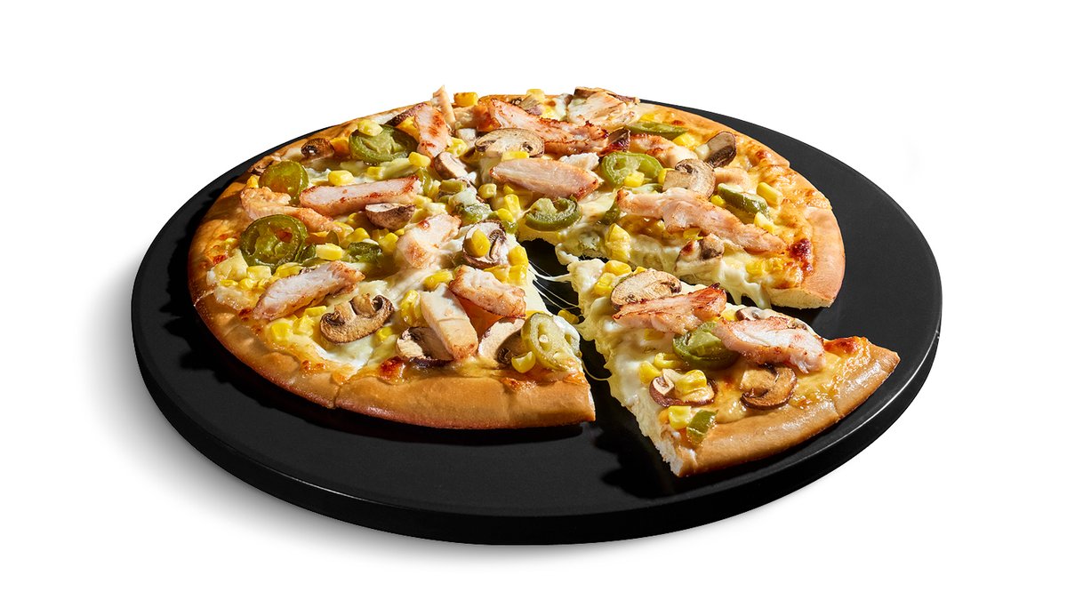 die Kreation von Domino's-Azubi Alan: cremige Knoblauchsauce als Basissauce, Hähnchenbrust-Streifen, frische Champignons, Mais & Jalapeños. Gewinner des Azubi-Wettbewerbs 2025.