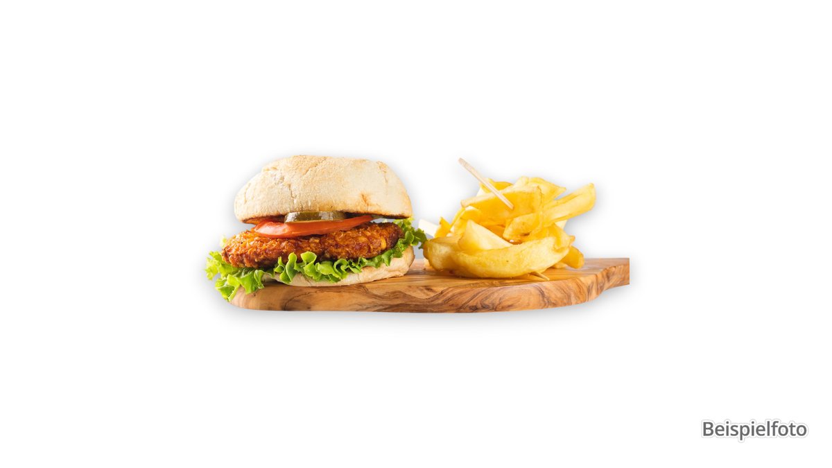 with a 130g vegan patty made from pea protein, vegan burger sauce and French fries