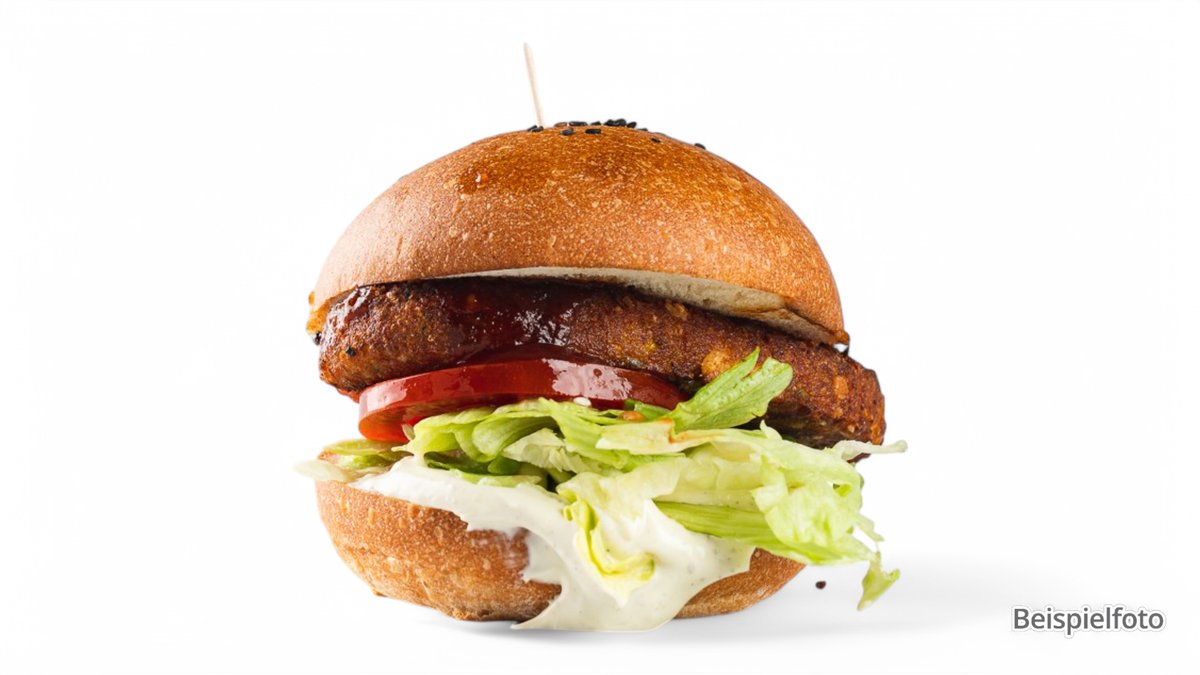 with a 130g vegan patty made from pea protein and vegan burger sauce