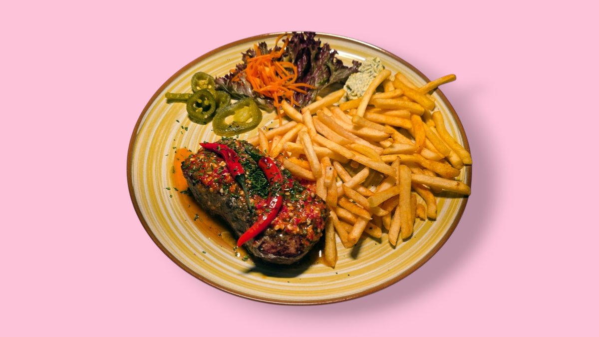 grilled rump steak with chili peppers and herb butter