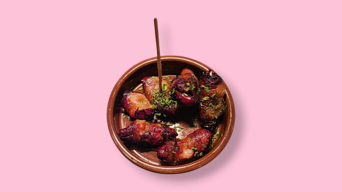 6 pieces dates wrapped in pork bacon