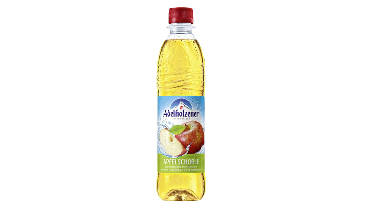 Apfelsaftschorle, Mischung aus Apfelsaft und Mineralwasser, ohne Zuckerzusatz, mit Kohlensäure