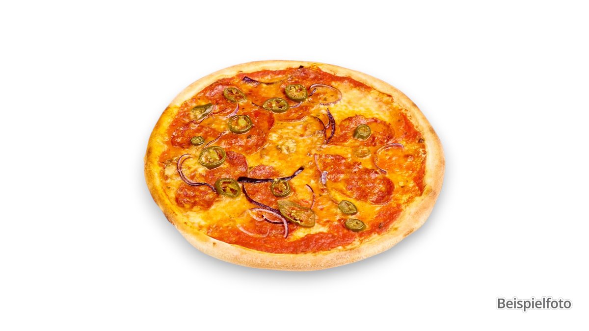 with tomato sauce, mozzarella, salami picante and chilli peppers