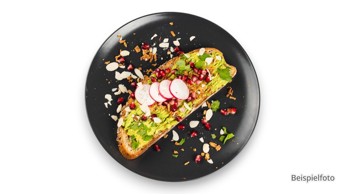 Vollkornbrot mit frischer Avocado, Mozzarella, hausgemachtem Basilikum-Pesto, Tomaten und knackigem Salat