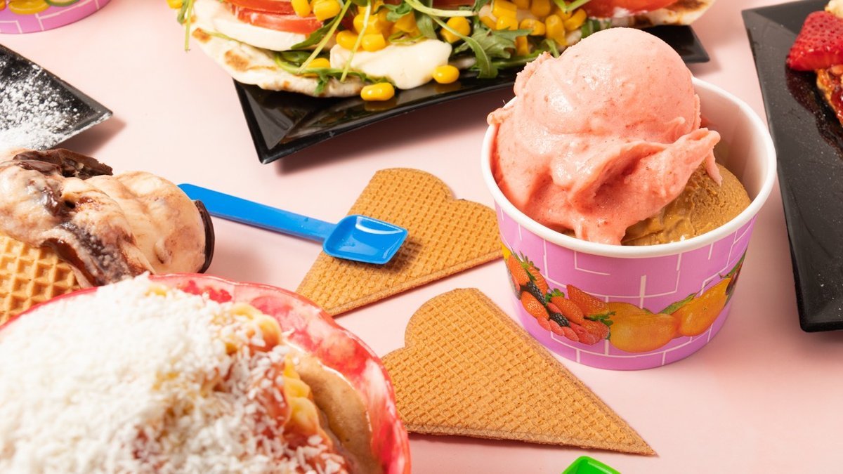 with hazelnut sauce, chocco sauce and hazelnut pieces