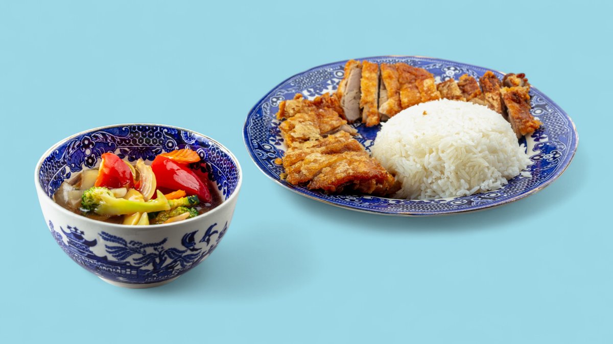 all dishes are prepared with grilled duck and vegetables and served with rice