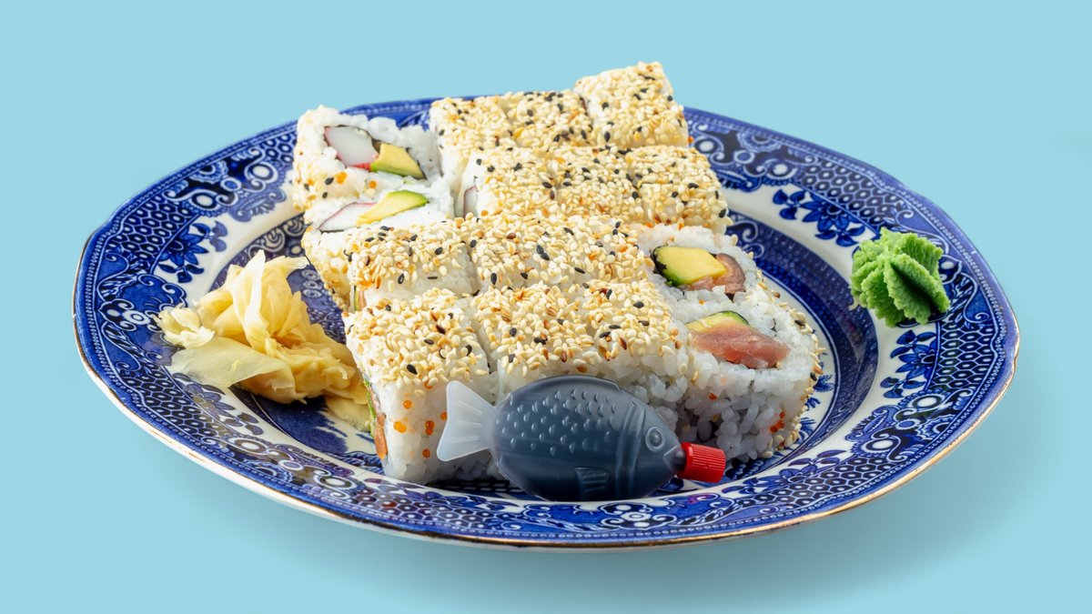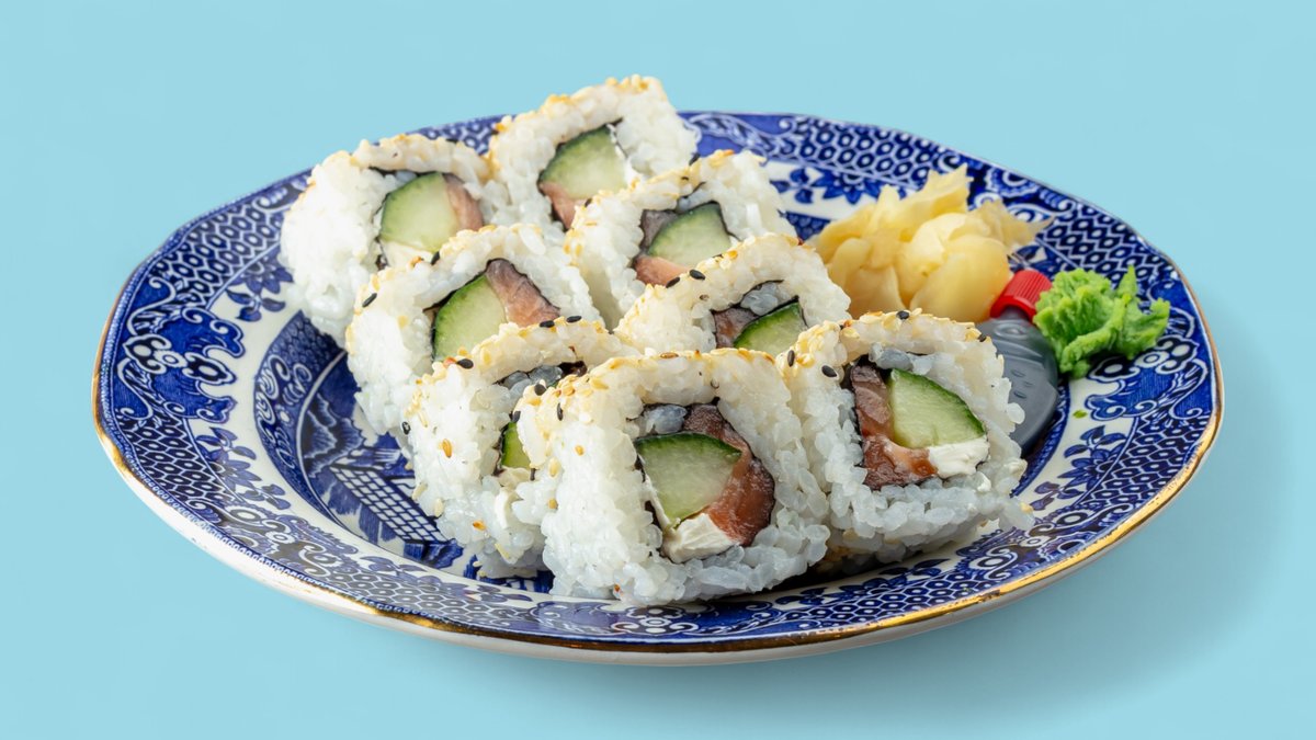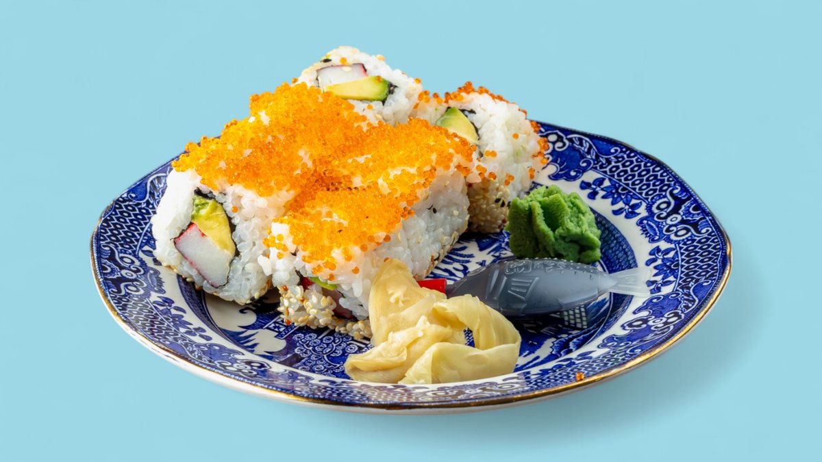 6x california tobiko, 6x grilled salmon, 6x avocado cream cheese